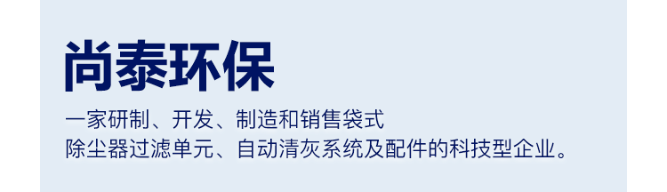上海尚泰環(huán)保配件有限公司創(chuàng)立于2006年5月,是一家研制、開(kāi)發(fā)、制造和銷(xiāo)售袋式除塵器過(guò)濾單元、自動(dòng)清灰系統(tǒng)及配件的科技型企業(yè)。